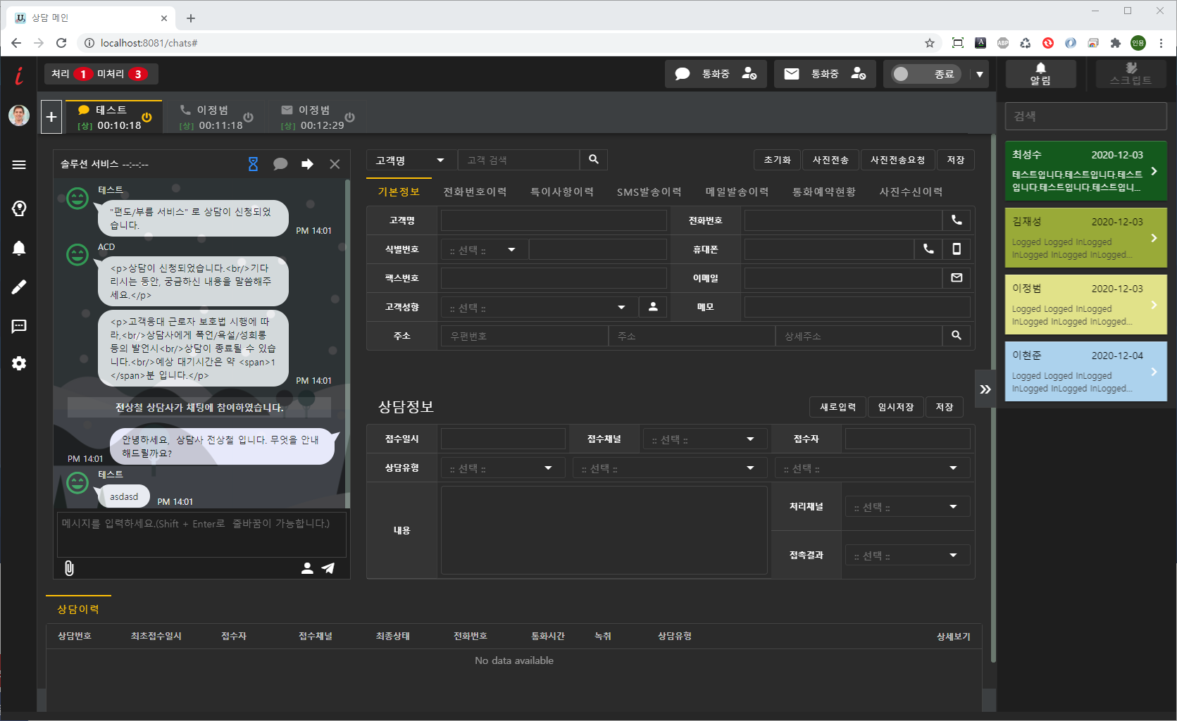 · 상담이력조회 및 저장기능